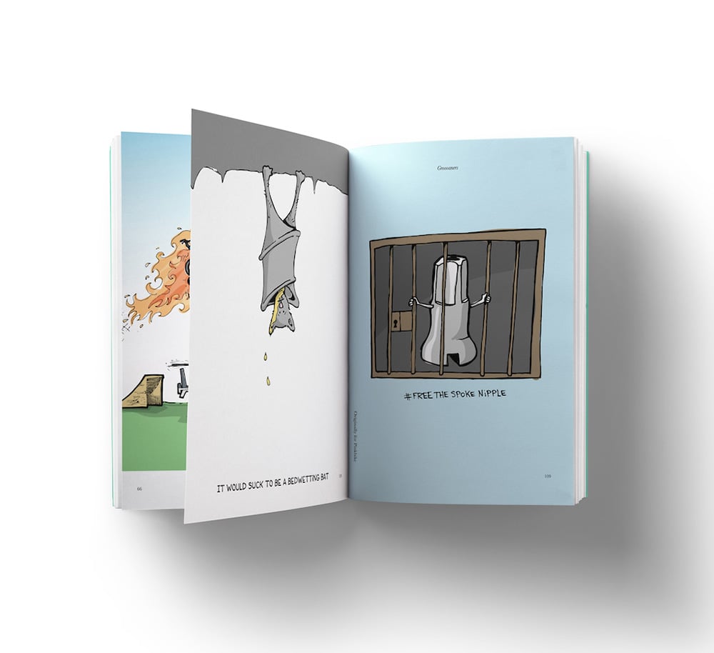 An assorted collection of not-too-artsy-fartsy cartoons and doodles (though there are a few fart jokes). A bunch of bicycle comics, lots of low-brow humor, dad jokes, questionable puns, and some things that are probably only funny to Taj. There’s a few actually serious things (but hopefully you can’t tell) and even a few essays.